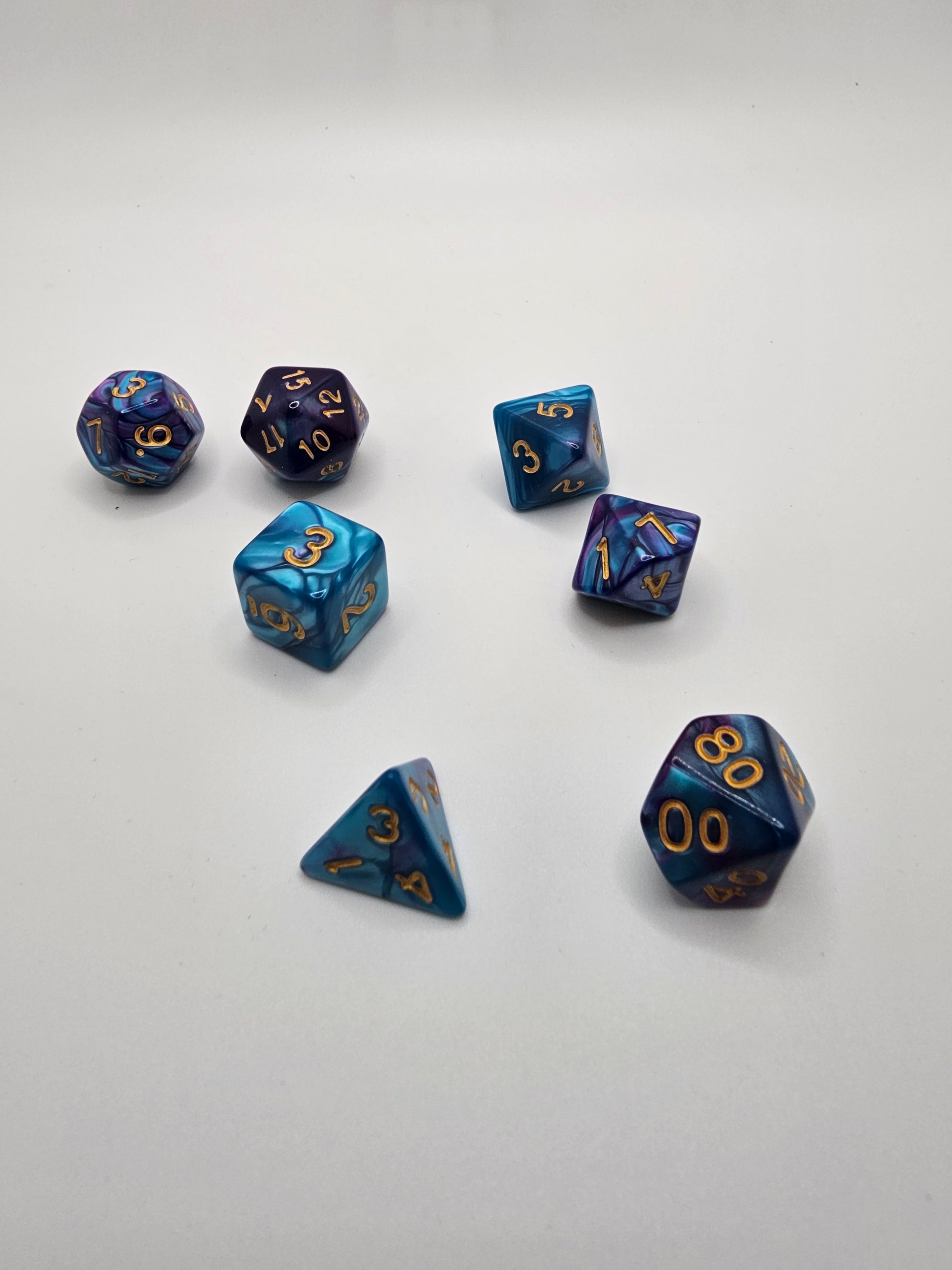 Blue siren Marble 7pc Dice Set.